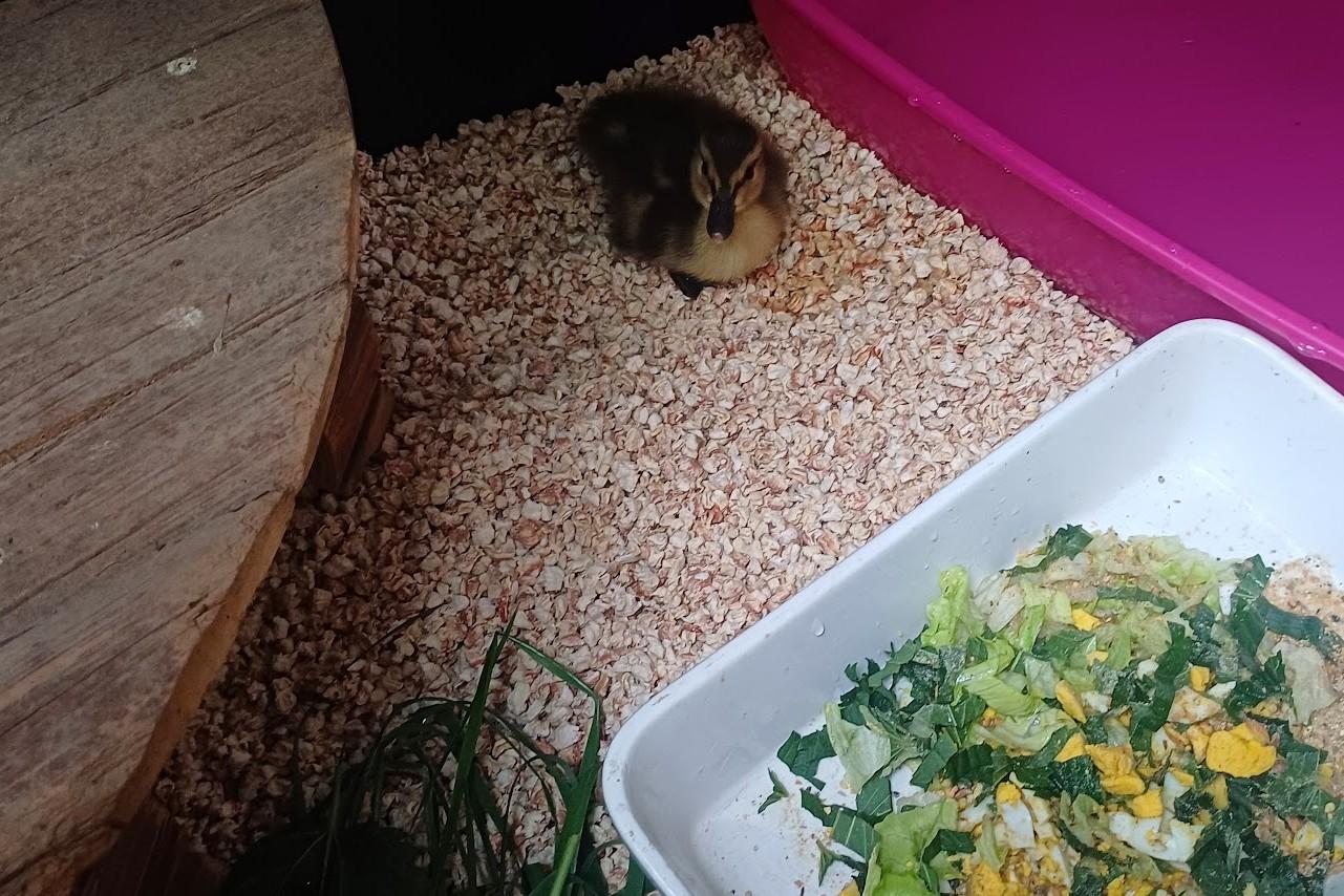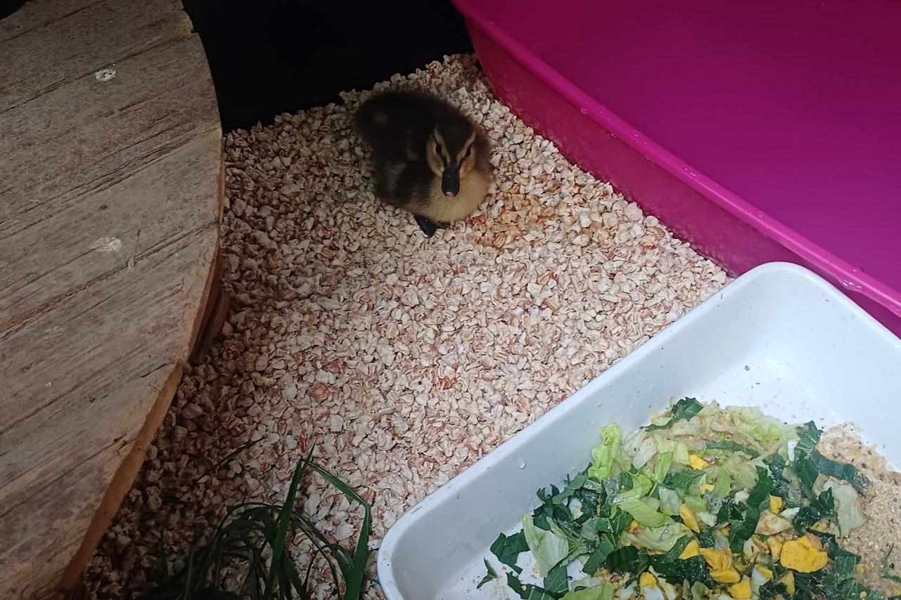Dovezli nám kačenku, toulala se po hlavní silnici v Morkovicích bez maminky. Tak jsme jí na pár dní ubytovali a hledali po okolí, která kačena velká by jí přijmula do hejna a povedlo se :-). Káča byla malý průzkumník a cestovatel, ani se nedivím, že se mamince ztratila, taky jsem jí hledala po zahradě :-) 2025