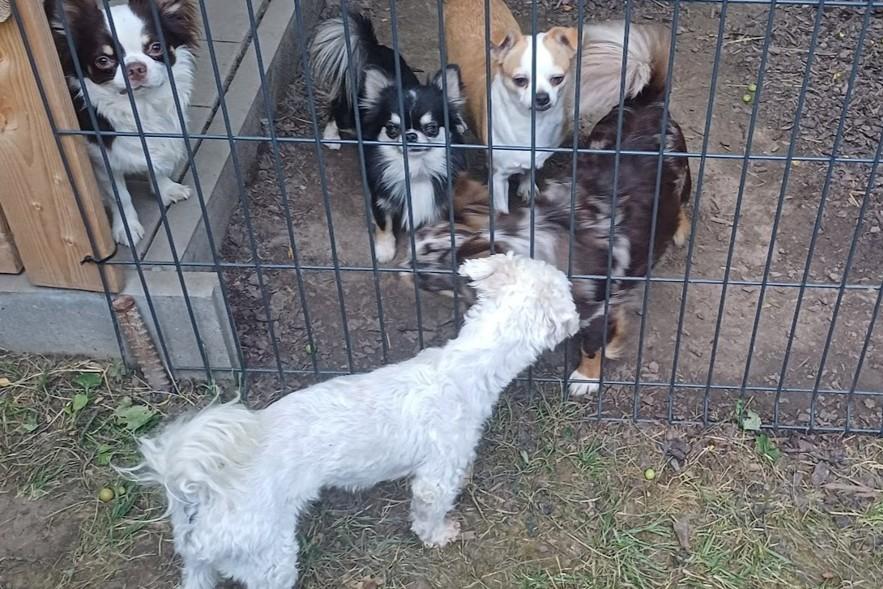 Přijali jsme malého vykuleného pejska. Doma byl týraný a nemá za sebou hezkou historii. Akční je na 7, očkovák má na 14( už se nám stalo, že pejsek měl očkovák po pejskovi předchozím a měl jednou tolik let, než mu bylo) , info byla asi 10-no kdo ví. Chlapeček je kontaktní, ale taky paličatý a svůj. Proběhneme veterinu-zoubky jsou jasný, kastrace také, chronický zánět očička, uvidíme, co kardio. Ještě musíme vykrmit. Bíbí už je veselý pejsek, který má zájem hlavně o fenečky. Budeme hledat domov, kde na něj budou hlavně hodní a trpělivý, ale nenechají si diktovat J.
